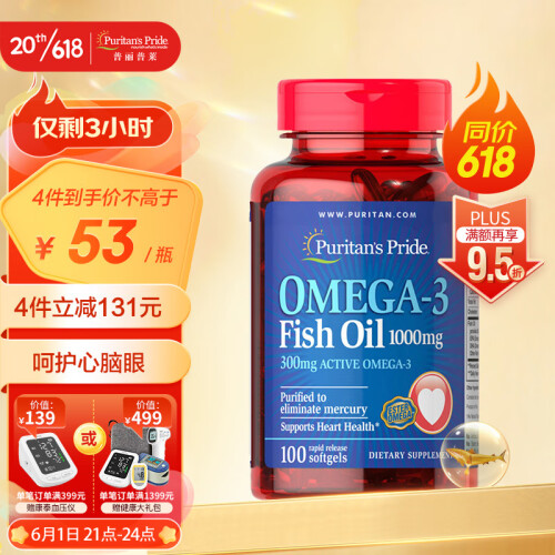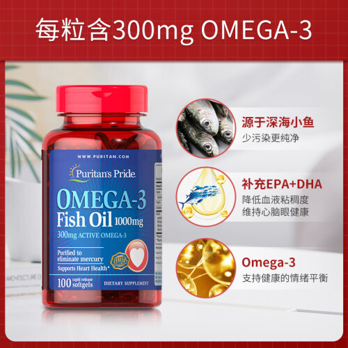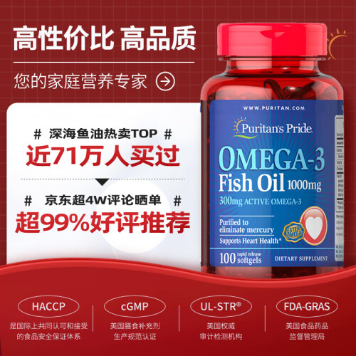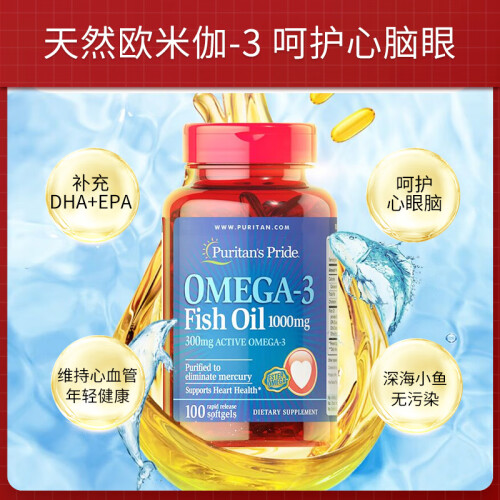 当前的位置: 首页 > 今日值得买 > 普丽普莱Puritan's Pride 深海鱼油软胶囊1000mg 100粒 欧米伽-3 含EPA和DHA 美国进口