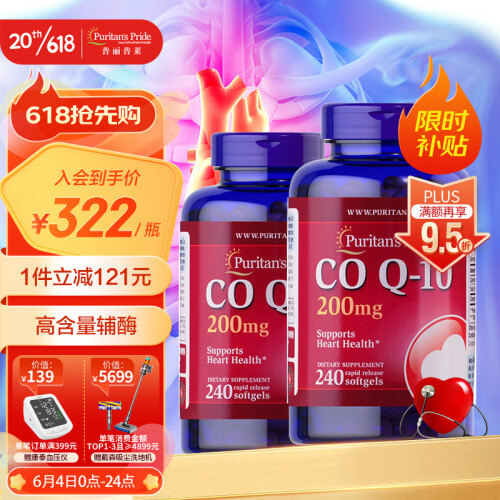 当前的位置: 首页 > 今日值得买 > 普丽普莱Puritan's Pride 辅酶Q10软胶囊200mg*240粒*2瓶装 辅酶素q10