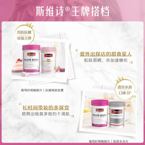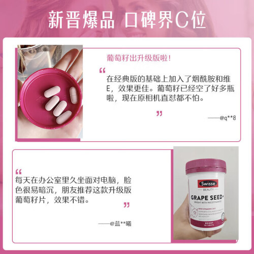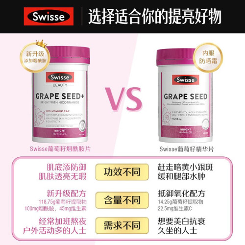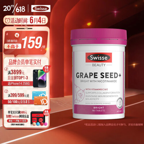 当前的位置: 首页 > 今日值得买 > Swisse 葡萄籽烟酰胺片180片/瓶 原花青素VC 淡化色素提亮肌肤 保护皮肤胶原蛋白 热巴同款 澳洲进口