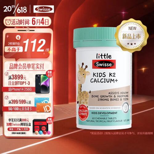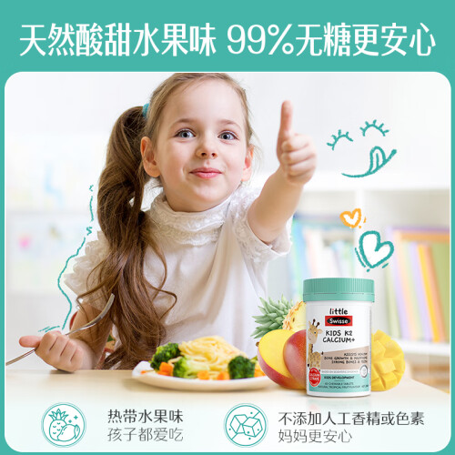当前的位置: 首页 > 今日值得买 > Swisse斯维诗 儿童K2柠檬酸钙60片 强健骨骼 含螯合锌维D3 酸甜水果味 2-12岁适用 澳洲进口