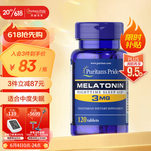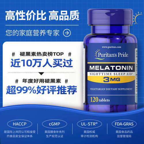 当前的位置: 首页 > 今日值得买 > 普丽普莱Puritan's Pride褪黑素片3mg*120片 舒压闪睡 助眠安睡 成人男女 美国进口