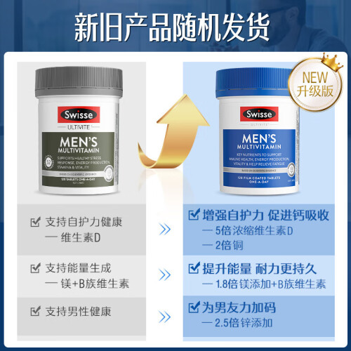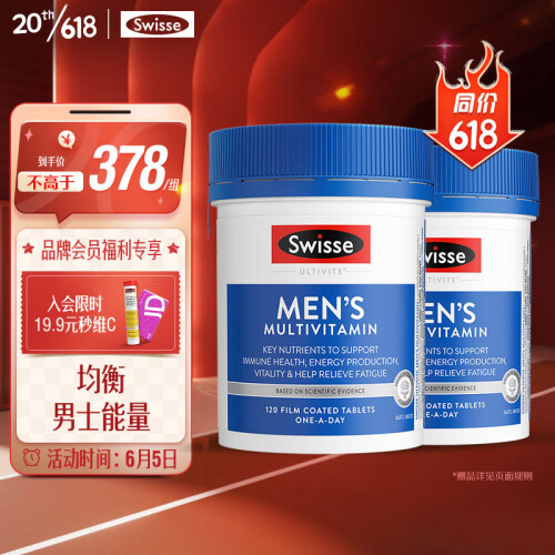 当前的位置: 首页 > 今日值得买 > Swisse斯维诗 男性复合维生素片 120片*2瓶 含多种营养素 含B族VC钙镁 补充营养 提振精力 新旧产品随机发货