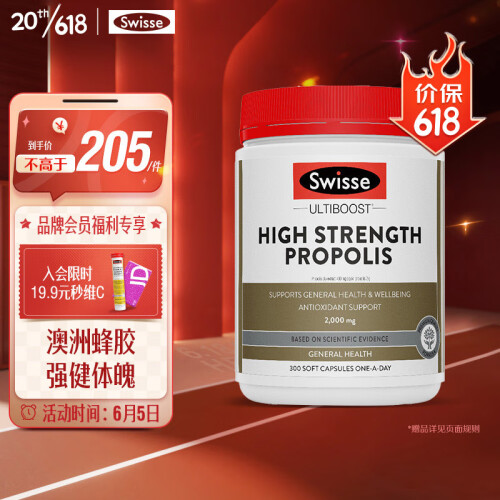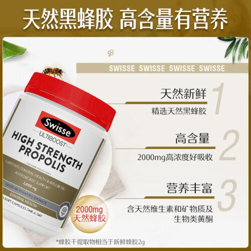 当前的位置: 首页 > 今日值得买 > Swisse斯维诗 高浓度蜂胶胶囊 300粒/瓶 天然成分 滋补身体 增强机体 成人中老年适用 澳洲进口