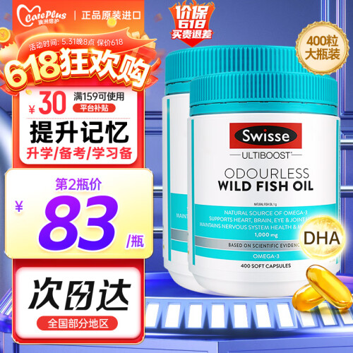 当前的位置: 首页 > 今日值得买 > 斯维诗Swisse儿童DHA深海鱼油胶囊学生青少年补脑提高改善记忆力鱼肝油中高考生澳洲进口 【日常学习必备】无腥味基础版dha400粒/瓶
