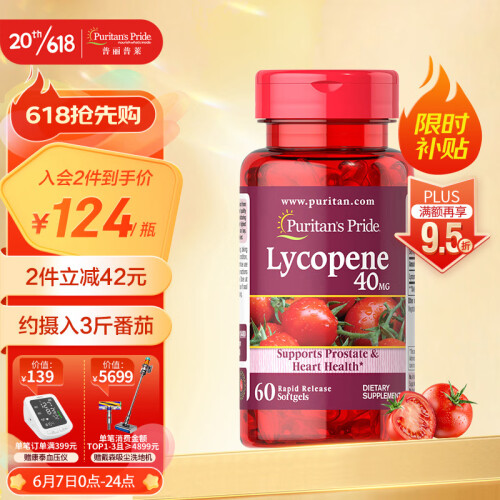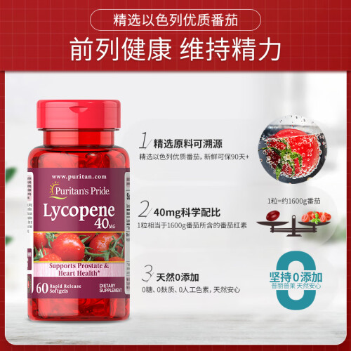 当前的位置: 首页 > 今日值得买 > 普丽普莱Puritan's Pride 番茄红素软胶囊40mg*60粒 锯棕榈精氨酸叶酸成人男性男士40岁 美国进口