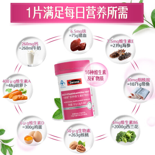 当前的位置: 首页 > 今日值得买 > Swisse斯维诗 力她维女士多种维生素矿物质片 90片 含16种复合免疫营养 B族VD钙叶酸烟酰胺 呵护成人女性