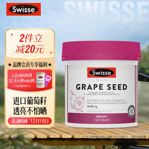 当前的位置: 首页 > 今日值得买 > Swisse斯维诗 葡萄籽精华片14250mg 300片/瓶 原花青素维C 美容养颜祛黄提亮 支持胶原蛋白生成 热巴同款