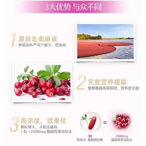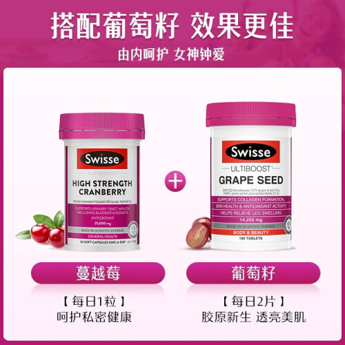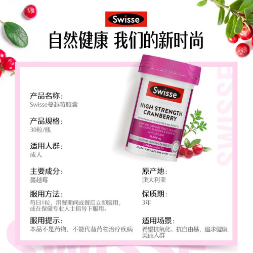 当前的位置: 首页 > 今日值得买 > Swisse高浓度蔓越莓胶囊25000mg30粒*1瓶天然蔓越莓精华 A型原花青素 海外进口