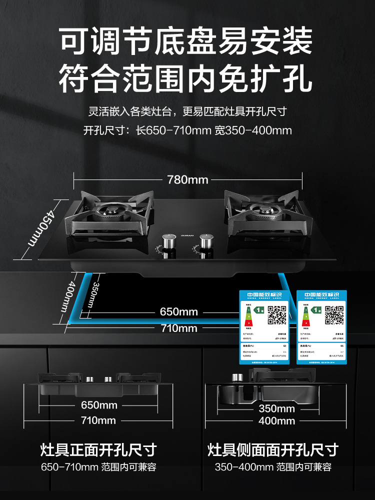 更多COLMO双头燃气灶嵌入式5.2kw大火力爆炒升级定时家用天然气灶QL5P