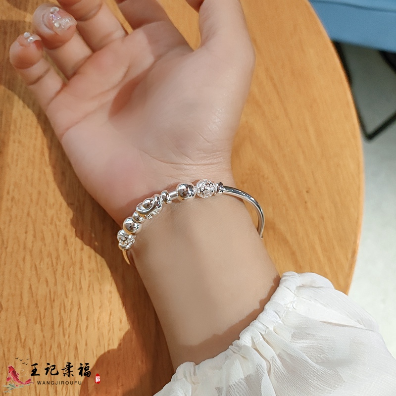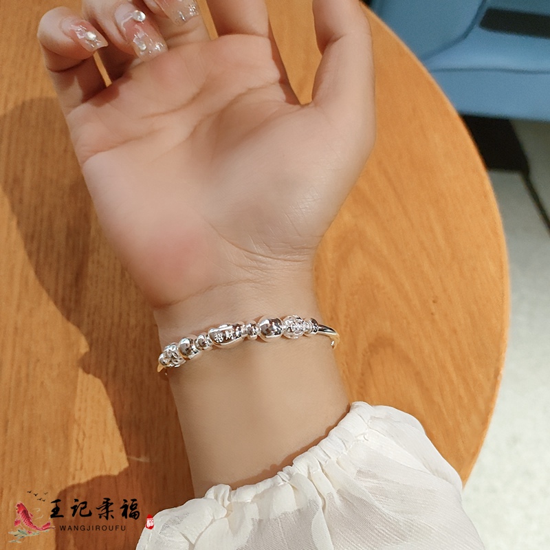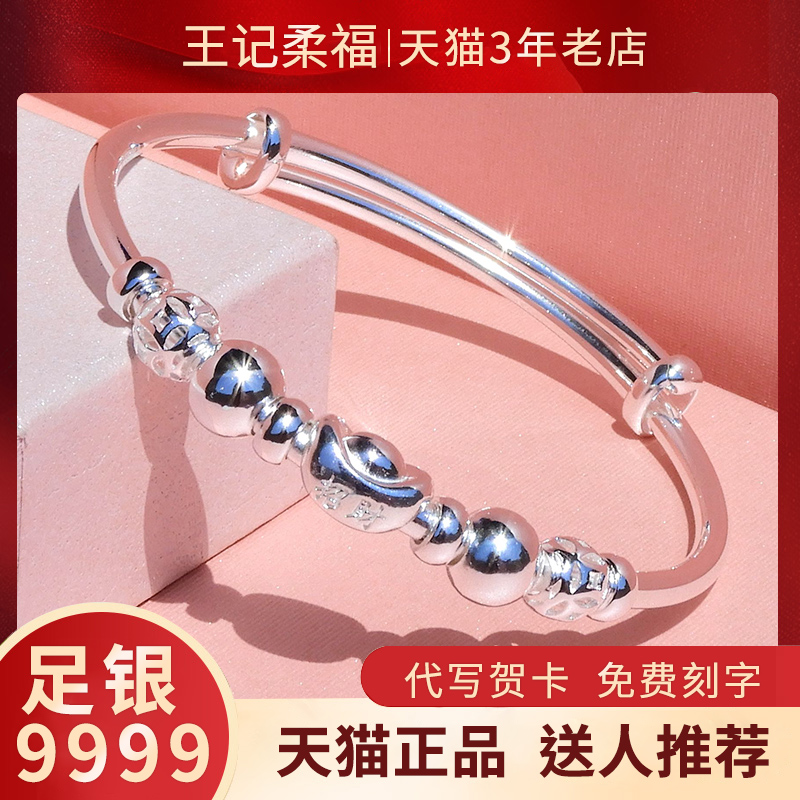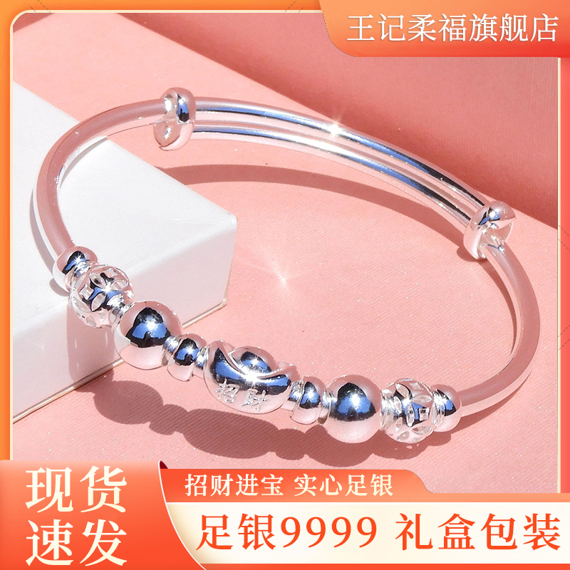 更多正品9999纯银手镯女足银元宝镯子年轻款百搭手环首饰品节日礼物