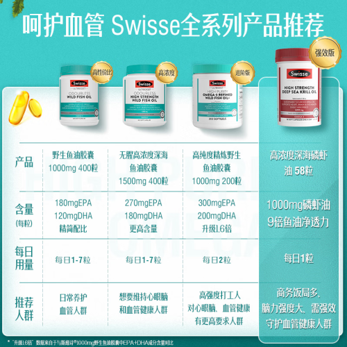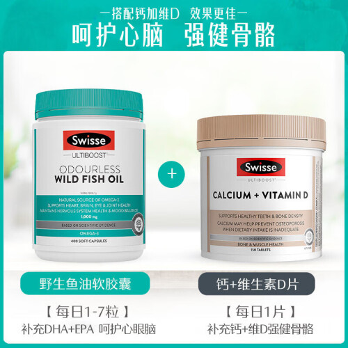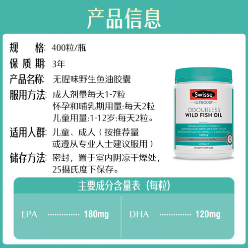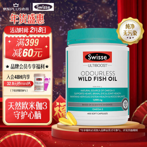 当前的位置: 首页 > 今日值得买 > Swisse斯维诗 无腥味野生鱼油软胶囊Omega-3 1000mg400粒 DHA+EPA 平衡血脂守护心眼脑血管 原料纯净无污染