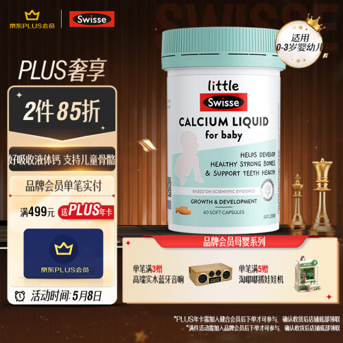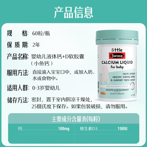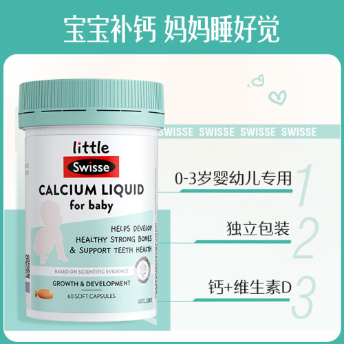 当前的位置: 首页 > 今日值得买 > Swisse斯维诗 小鱼钙 婴儿钙+维生素D软胶囊 60粒/瓶 液体钙 助力骨骼牙齿成长 0-3岁儿童 澳洲进口