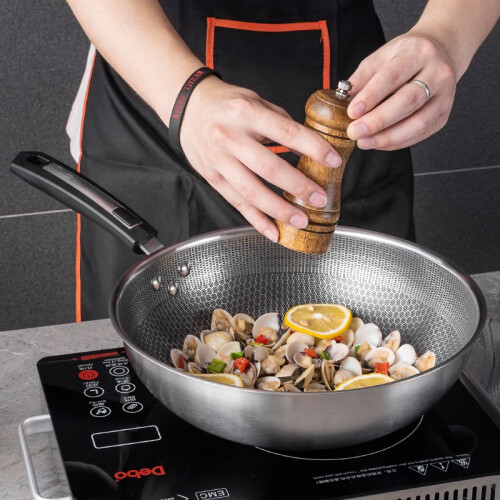当前的位置: 首页 > 今日值得买 > Debo德铂炒锅不锈钢炒菜锅32cm不粘可用不锈钢锅铲可立盖通用灶具