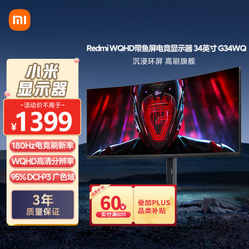 当前的位置: 首页 > 今日值得买 > 小米Redmi 34英寸电竞显示器G34WQ WQHD曲面带鱼屏 180Hz刷新率 95%DCI-P3 广色域 带鱼屏显示器显示屏