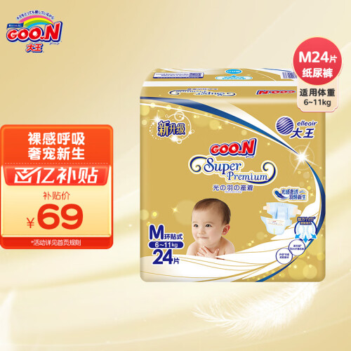 当前的位置: 首页 > 今日值得买 > 大王【品牌直供 安心品质】光羽纸尿裤 M24片尿不湿婴儿中号羽感轻薄透气
