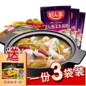 合5.68元/件~ 好人家 老坛酸菜鱼调料将1-1.5千克鱼剖腹洗净切成片置于容器中,加入腌鱼料包码匀待用;锅中放入100克食用油,待油熟后加入酸菜包翻炒出香,加入鱼头鱼骨适当炒制,再加入调料包煮沸;煮沸后往汤中加入鱼片,煮制1-2分钟即可出锅食用。规格:405g。 京东现售价15.8元,下单9件,总价打5折,叠加满129.0元减20.0元优惠券,到手价51.1元,合5.68元/件,近期好价。喜欢的朋友不要错过。