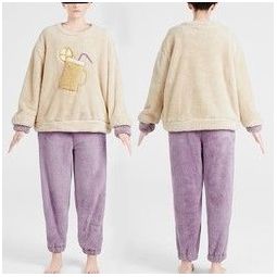 DAPU 大朴 男女款加绒睡衣套装,保暖舒适,温暖双面绒面料,轻松锁温,趣味口袋设计,时尚撞色,注重每一个小细节,亲肤柔软~