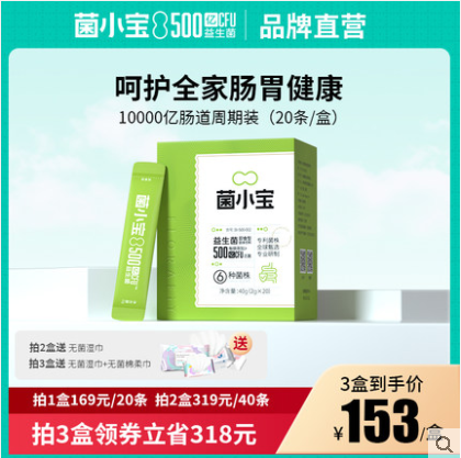 菌小宝益生菌成年女性大人孕妇儿童肠胃肠道活菌调理冻干粉益生元 3盒到手价139元/盒天猫超市 推荐人: 关耳木易 发布时间:2022-06-13 13:51:52