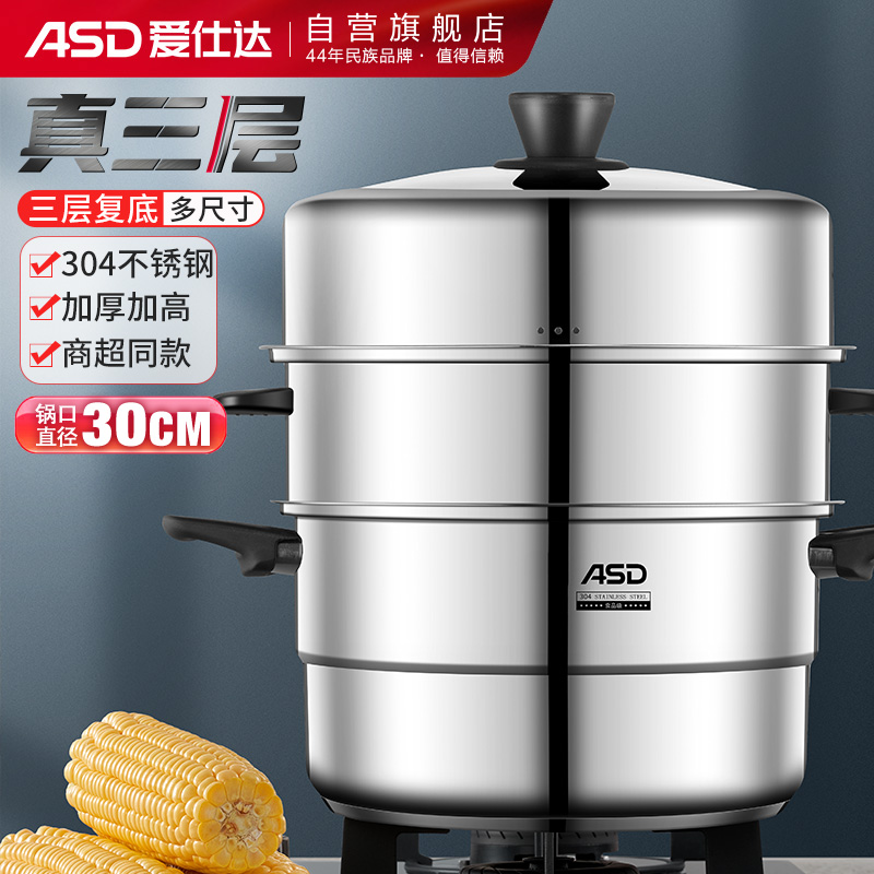 爱仕达 ASD 蒸锅304不锈钢锅体家用蒸笼三层30CM加厚复底燃气电磁炉通用锅具QN1530京东 推荐人: 丁丁小编 发布时间:2022-10-22 21:50:22