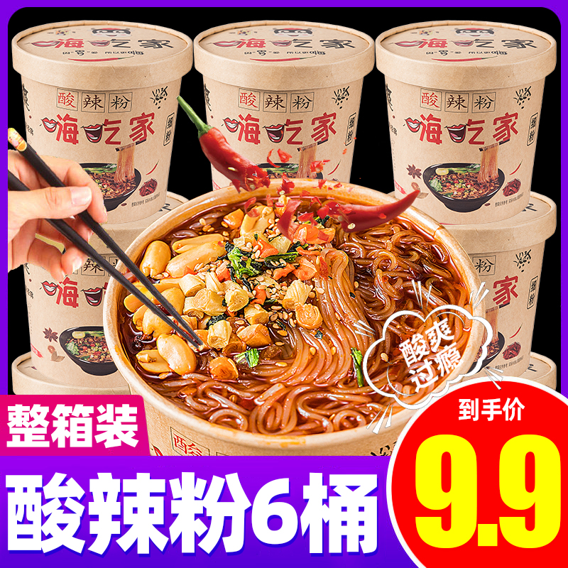 更多嗨吃家酸辣粉整箱6桶 红薯宽粉正宗包邮即食桶装速食方便面螺蛳粉