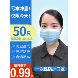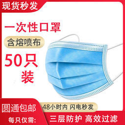 成人款一次性口罩50片装 含三层熔喷布