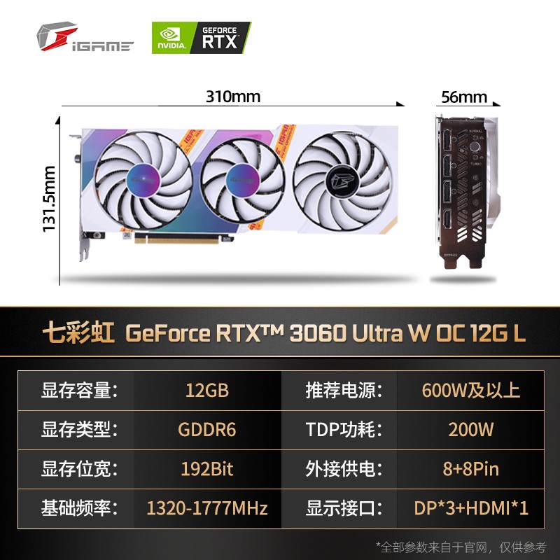 七彩虹(Colorful) RTX3060系列RTX3060电竞游戏电脑独立显卡12G显卡 RTX3060U W OC L+鑫谷650W白色