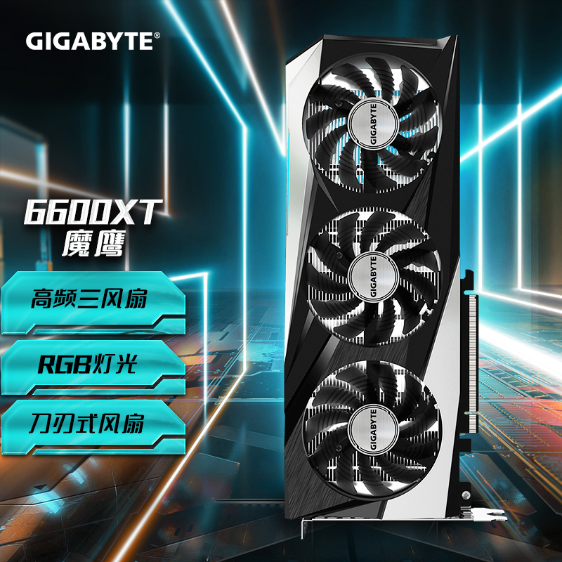 技嘉 GIGABYTE Radeon RX 6600 XT GAMING OC 8G电竞游戏设计智能学习电脑独立显卡
