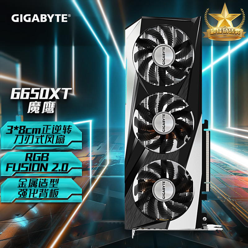 技嘉 GIGABYTE Radeon RX 6650 XT GAMING OC 8G电竞游戏设计智能学习电脑独立显卡