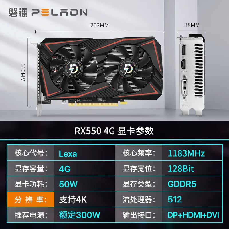 磐镭 RX550 4G显卡 GDDR5台式机独立显卡 LOL/穿越火线AMD家用办公游戏高清4K独显 【RX550 4G】大显存/双风扇/强化版