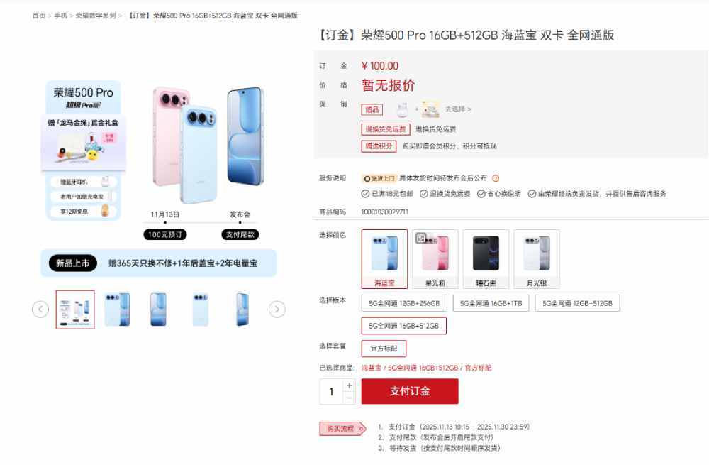 荣耀500 Pro规格曝光:搭载骁龙8至尊版与2亿....推荐人:丁丁小编 发布时间:2025-11-14 12:47:53