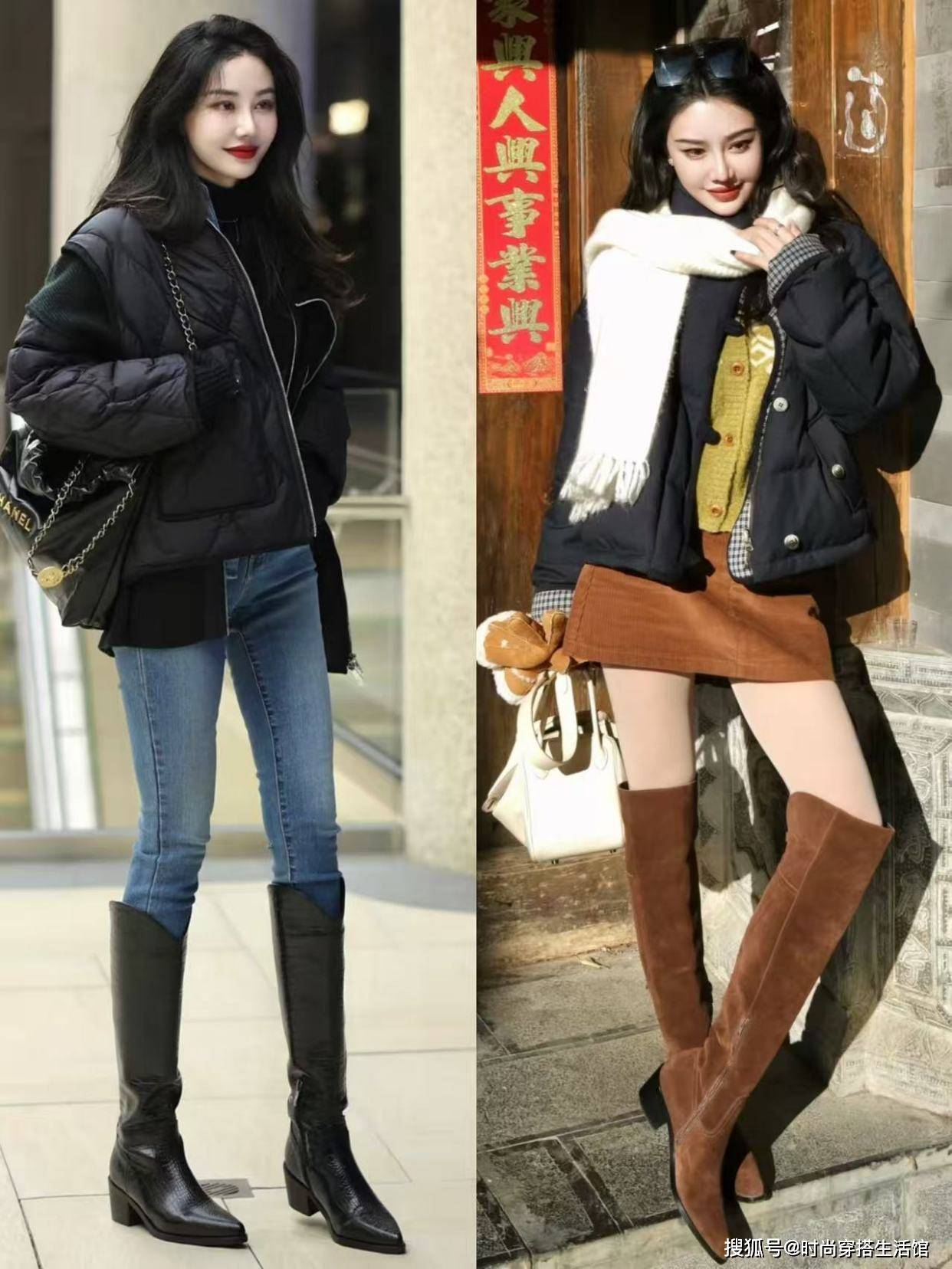 — 羽绒服+长筒靴才是今冬最正确的打开方式,有温度又有风度,真美 —