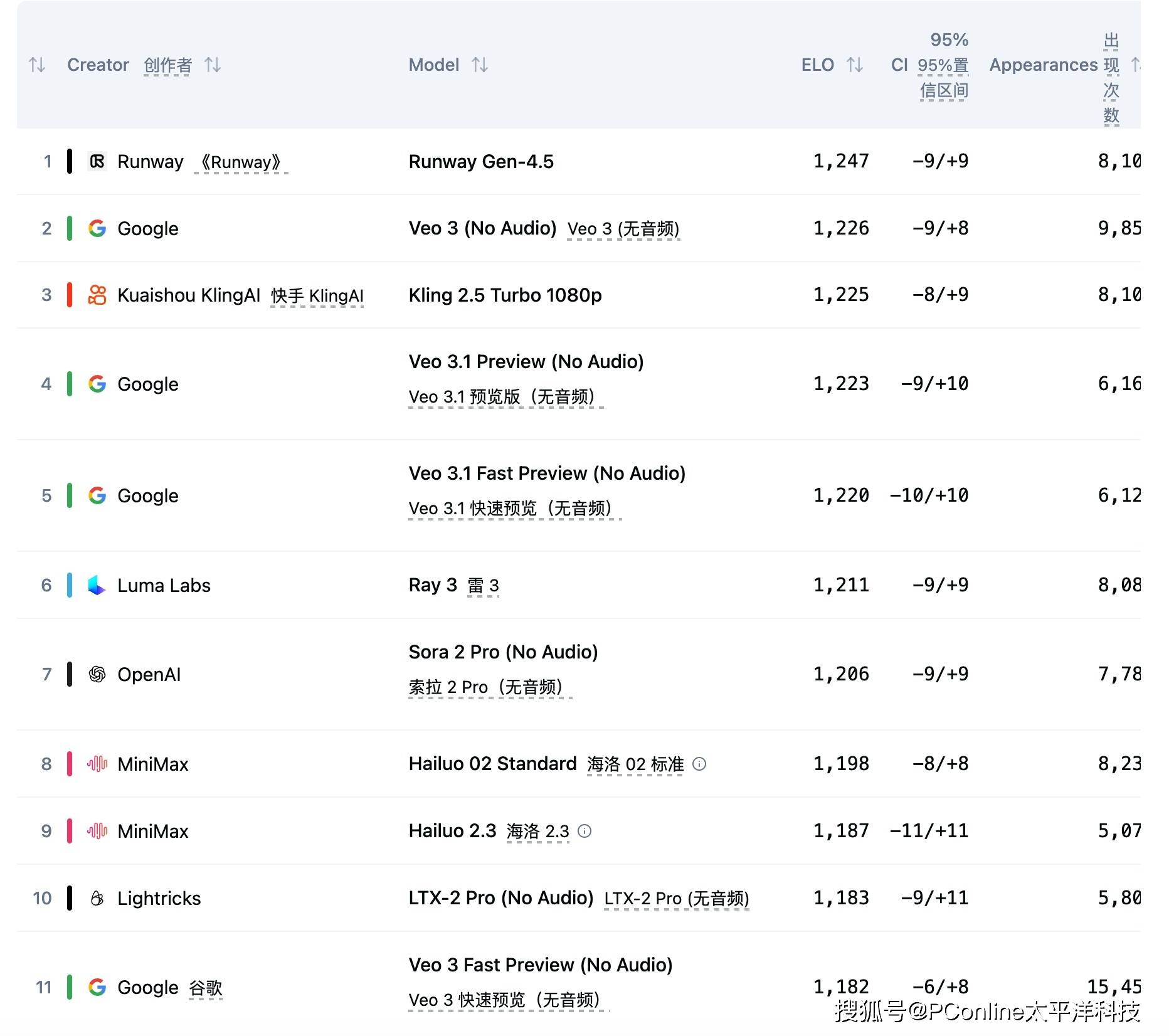 — Sora 2 Pro 跌至第七?Runway登顶视频模型榜首 —