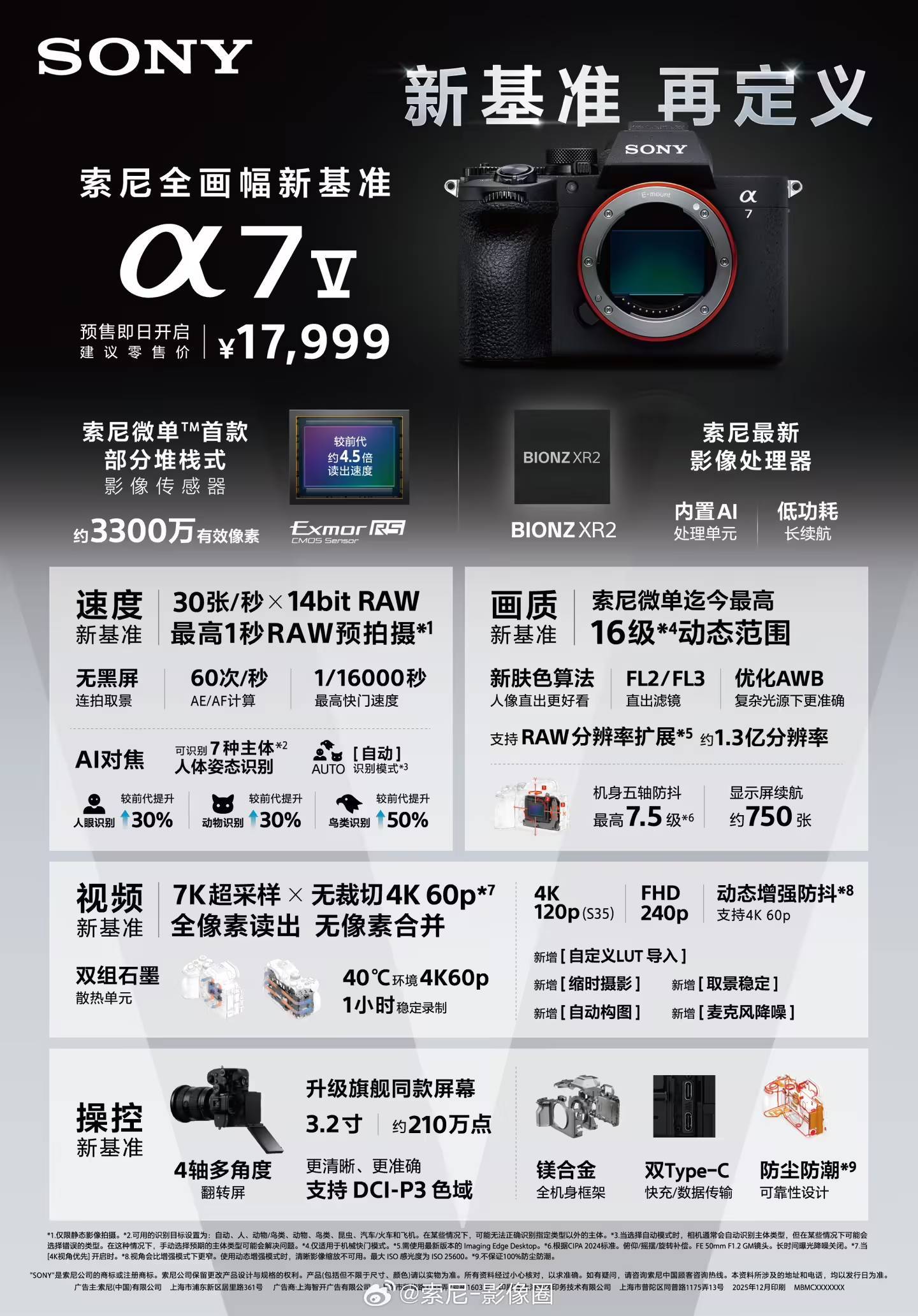 — 索尼Alpha 7 V全画幅无反相机发布 国行定价17999元 —
