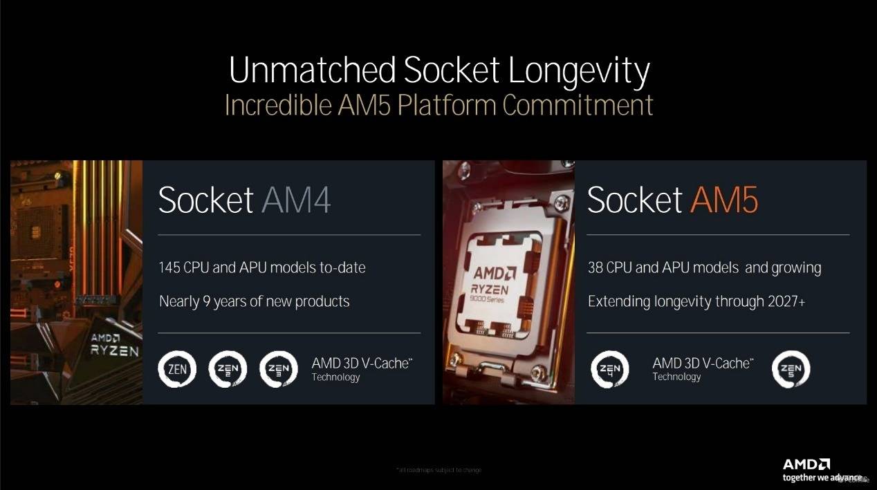 开始前,照例聊聊芯片组,新的AMD 800系主板沿用了AM5接口,因此现有的AMD 600系主板其实只需要更新BIOS就能使用新处理器。同时AMD还承诺,AM5接口至少沿用至2027年,因此玩家大可放心,新阶段购买新的800系主板绝对不会被“背刺”,甚至还能“战未来”。