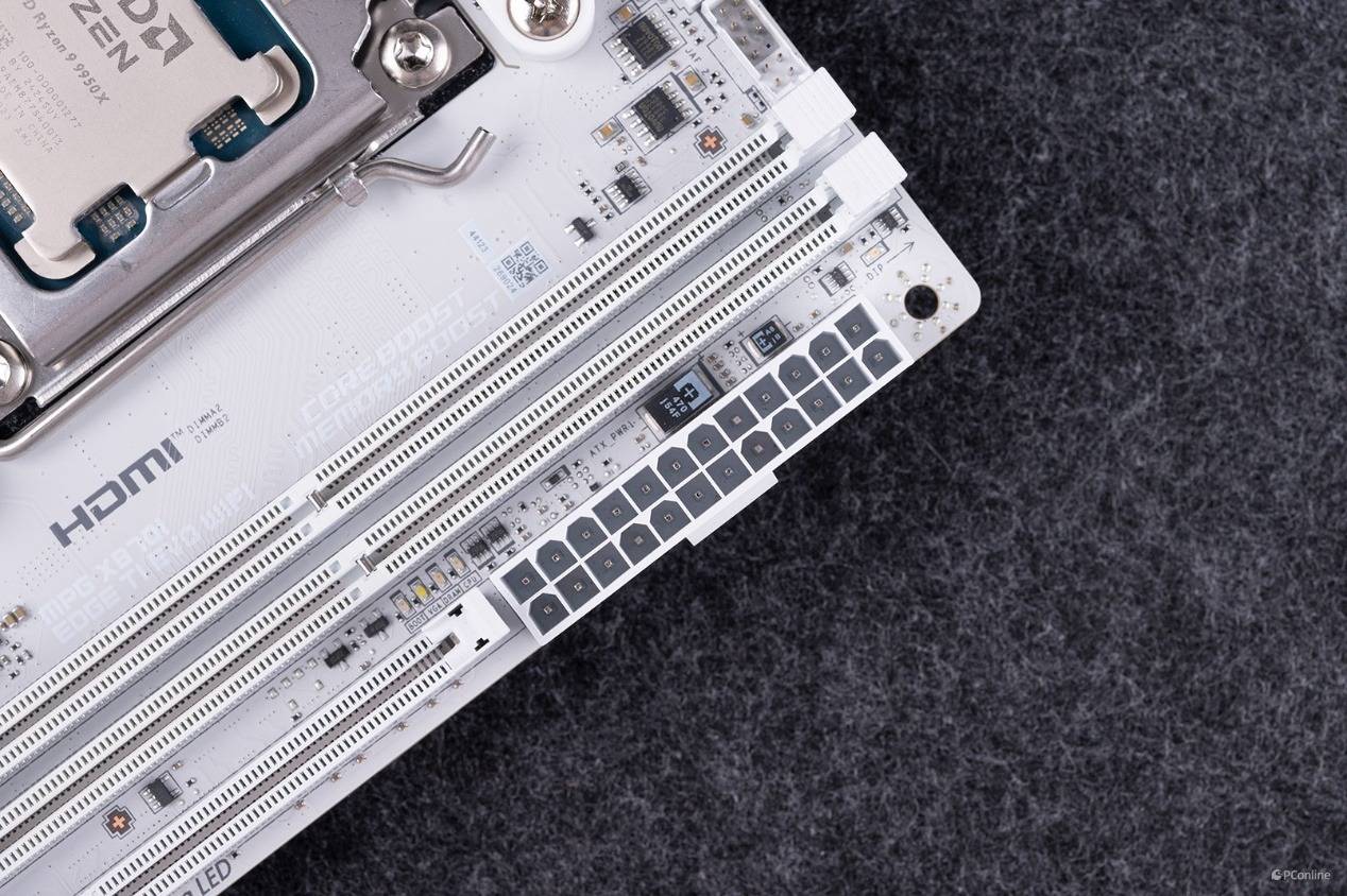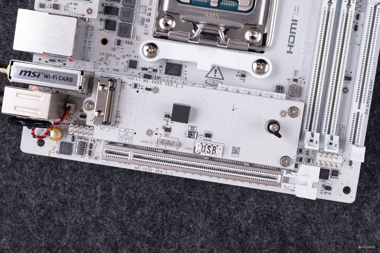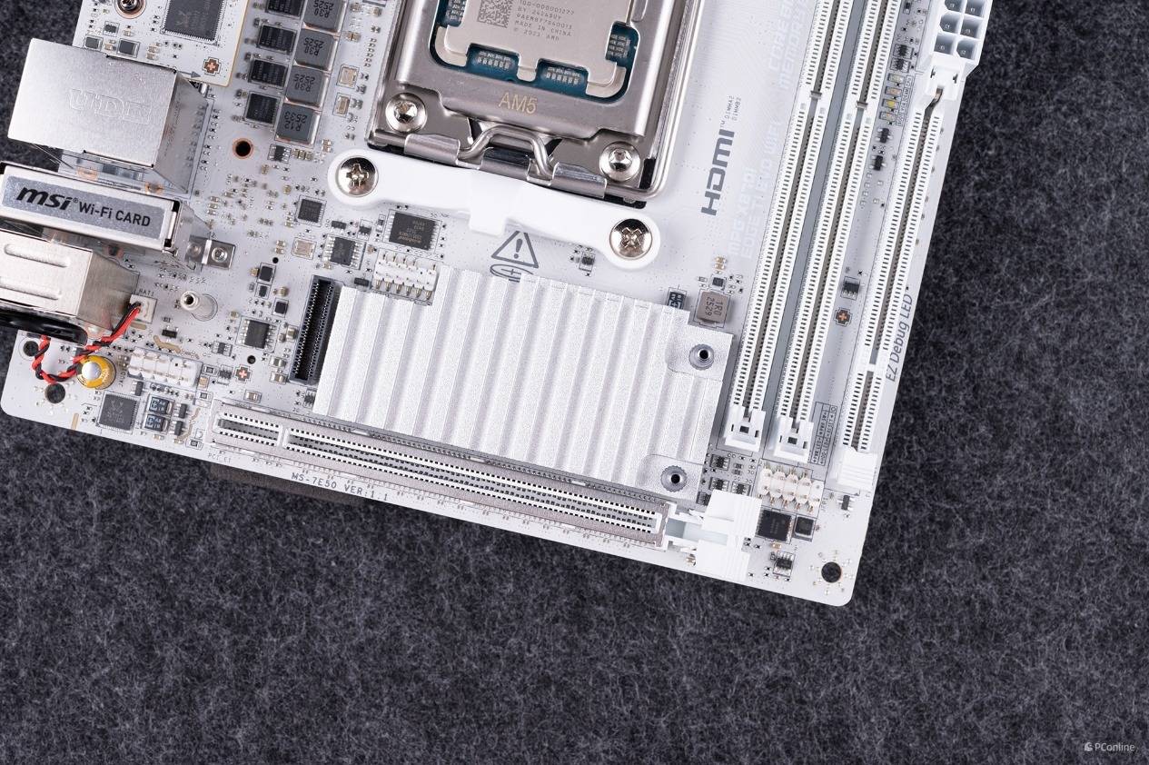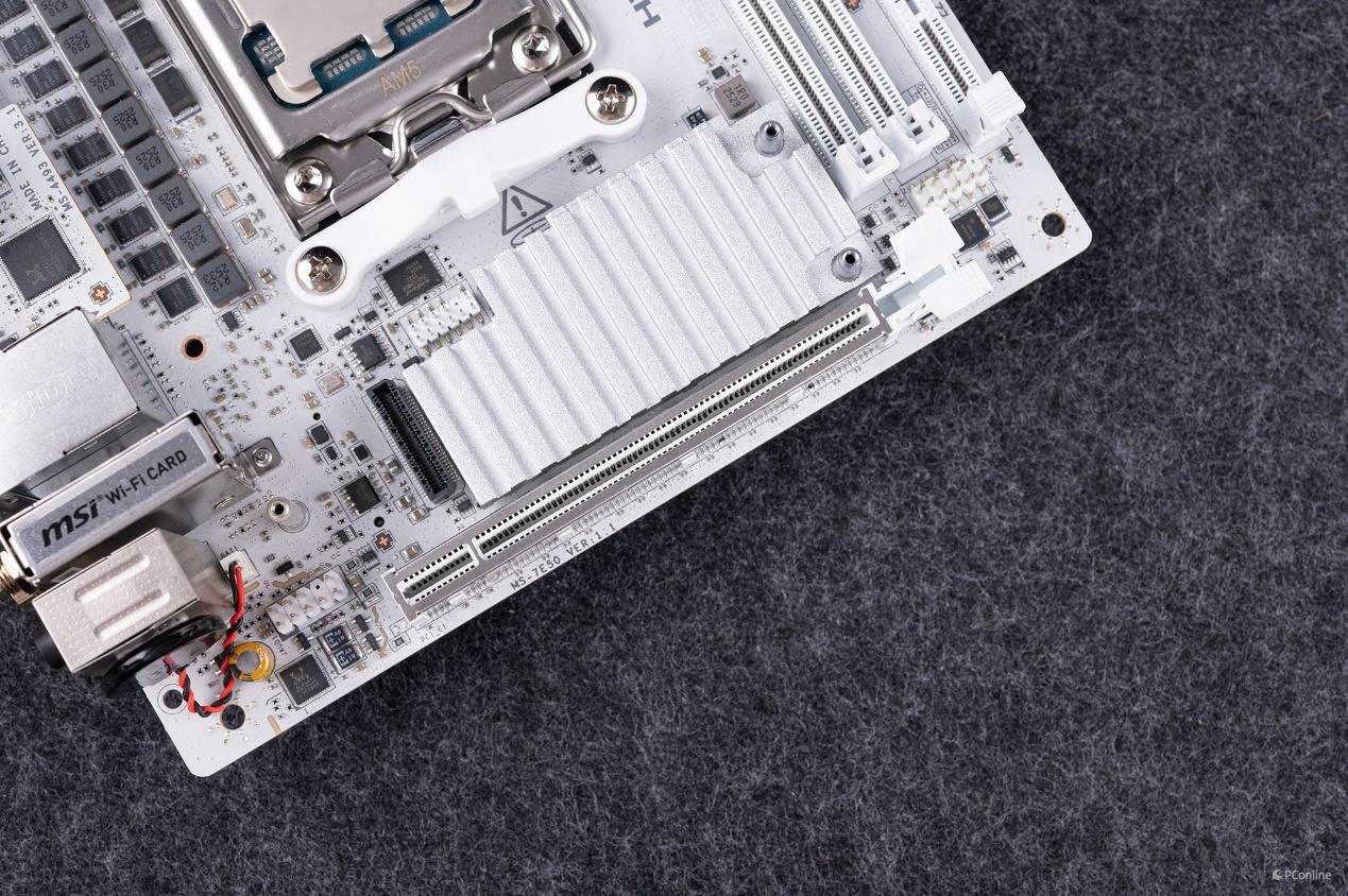 再说回本次的主角X870,X870芯片组配备了一颗Prom21南桥芯片,CPU提供的PCIe ×16插槽与M.2接口都支持PCIe 5.0速率,不过在PCIe通道上相比旗舰级的X870E就略逊一筹了,通道缩减到了8条PCIe 4.0和4条PCIe 3.0。但是即便是这个配置,对于绝大多数玩家来说,也非常够用了。