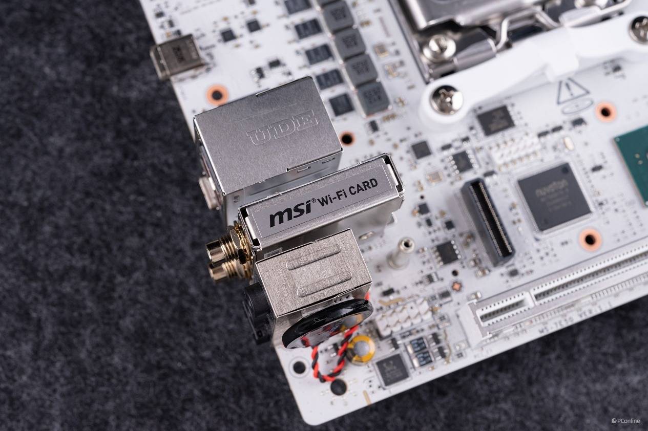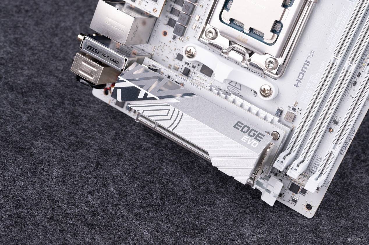 而在外观颜值上,微星MPG X870I EDGE TI EVO WIFI刀锋 钛也做到了几乎无可挑剔。真正的纯白PCB设计,搭配银灰色的散热装甲,从里到外都透露着一种精致的电竞感。超高的硬件规格加上吸睛的外观设计,既能满足性能党对硬件的极致要求,也能为个性化白色主体装机提供独特的视觉体验。