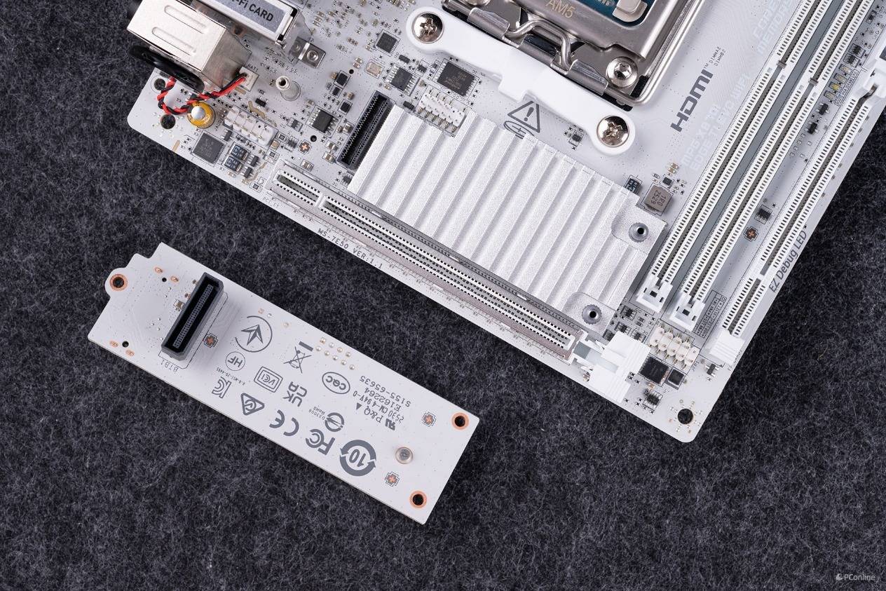比较有意思的是,主硬盘位是通过扩展PCB得来的。并且其支持PCIe 5.0×4速率。