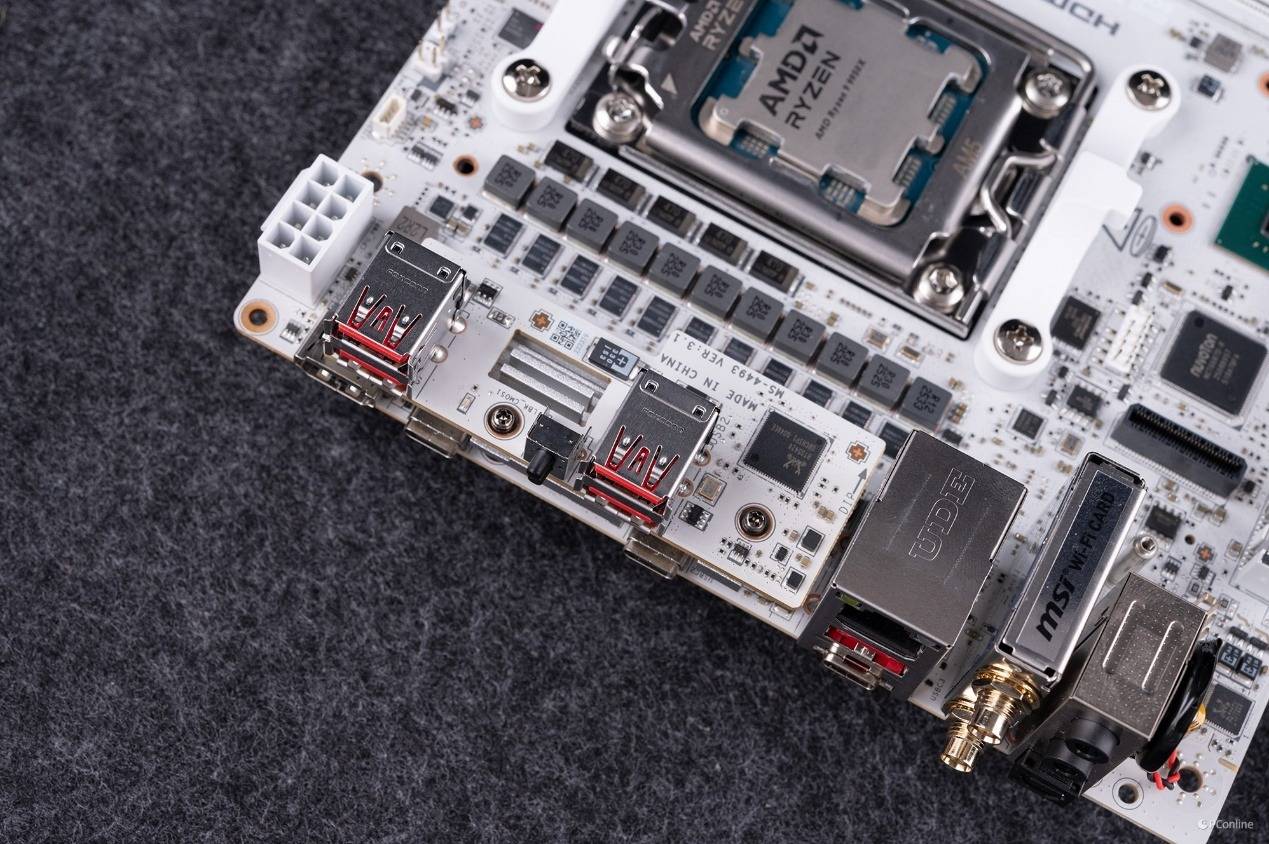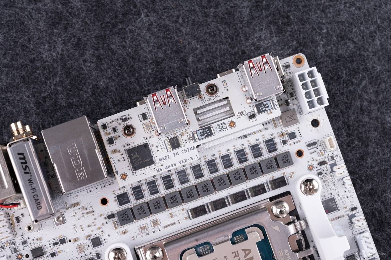 其8+2+1的强大供电系统还用上了110A核心供电、除此之外,12层PCB奢华用料,高效散热设计、卓越PCI-E和高达3槽位的存储、双USB 4+WIFI 7的高速传输以及良好易用扩展性,都让这块小身材的ITX的主板迸发出了顶级X870的能量。