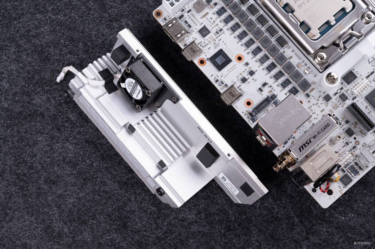 并且表面还可以看到相比较于之前的B850I,这次的主板散热马甲还加装了一把冰霜散热风扇,散热能力更加强悍。