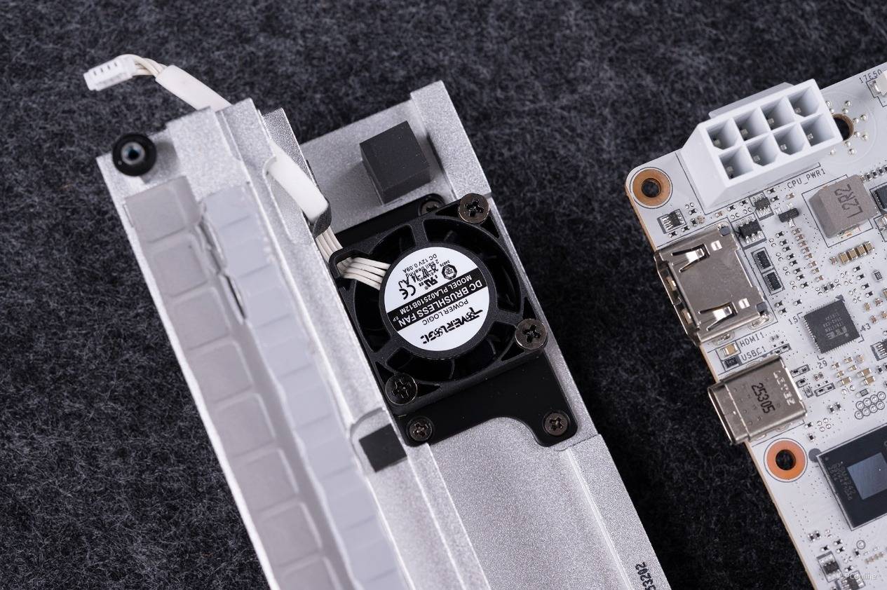 拆开以后还能看到,内部还有高导热系数7W/mK的导热垫加持,能够快速将供电电路中元件产生的热量转移至散热模块上。