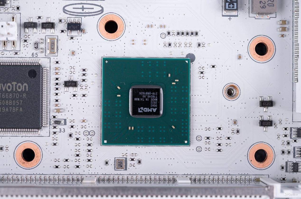 芯片组的旁边是Nuvoton的NCT6687D-R控制器芯片,其主要用来监控主板上的各个部分的参数。
