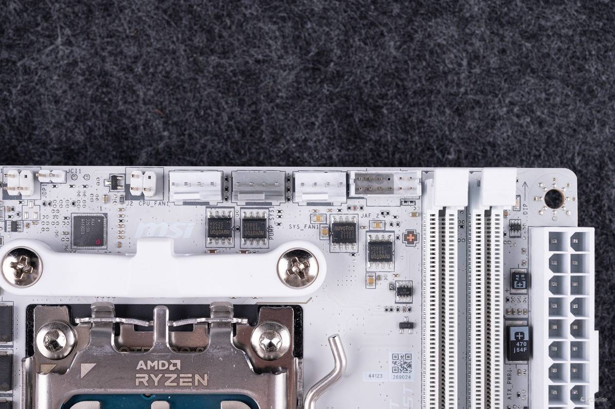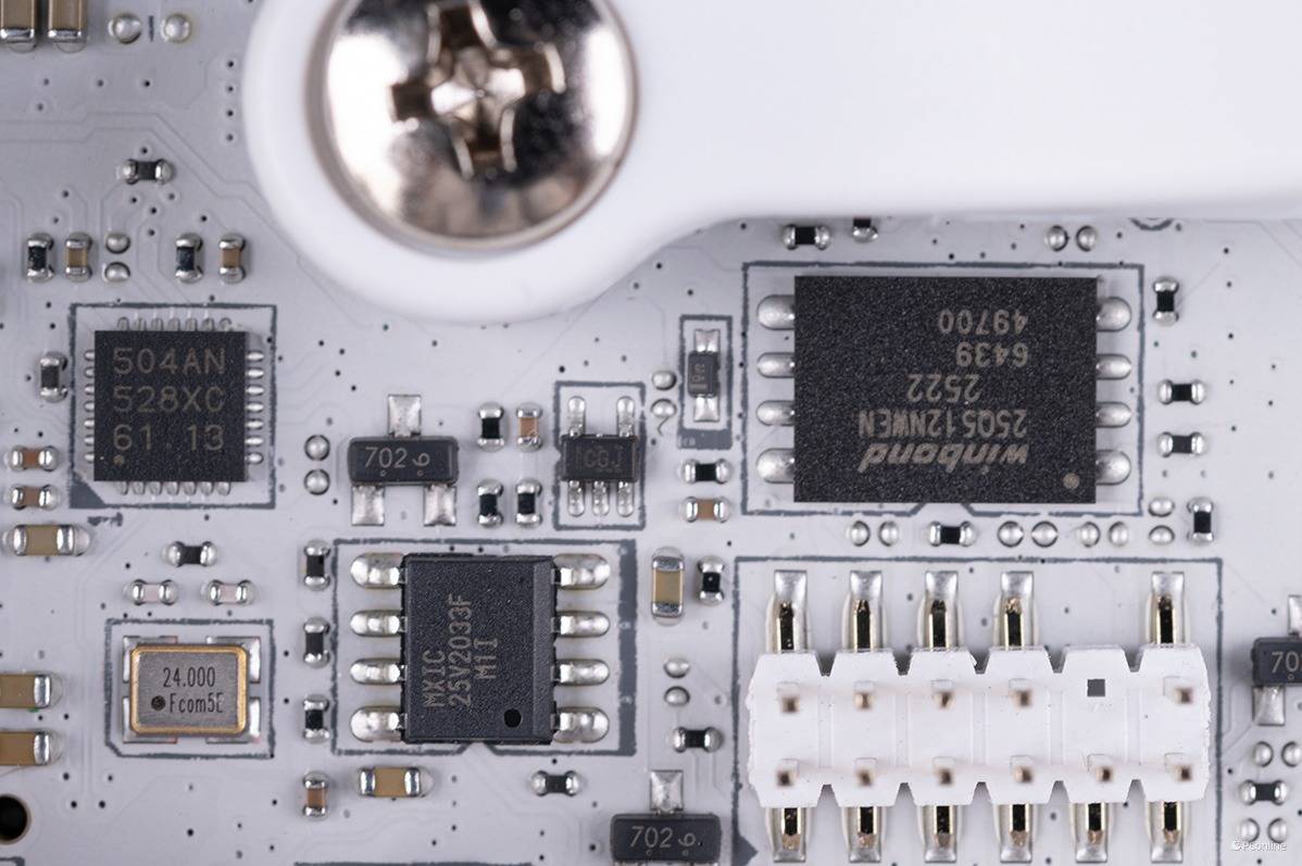 上方还有一个来自华邦电子的25Q512NWEN芯片,其为NOR FLASH芯片,说人话就是主板BIOS的闪存芯片。值得一提的是本次我们上手的微星MPG X870I EDGE TI EVO WIFI刀锋 钛主板还升级为64MB的大容量BIOS,让用户能够完整使用BIOS界面。即便未来升级到最新的硬件,该主板也能确保完全兼容及稳定性能。
