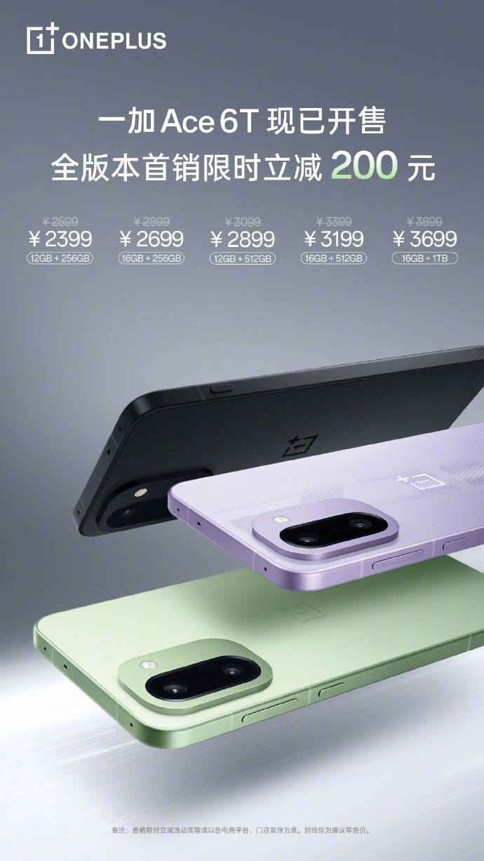 — 一加 Ace 6T今日10点开售:2399元起!首发骁龙8 Gen 5,165Hz超高帧屏幕 —