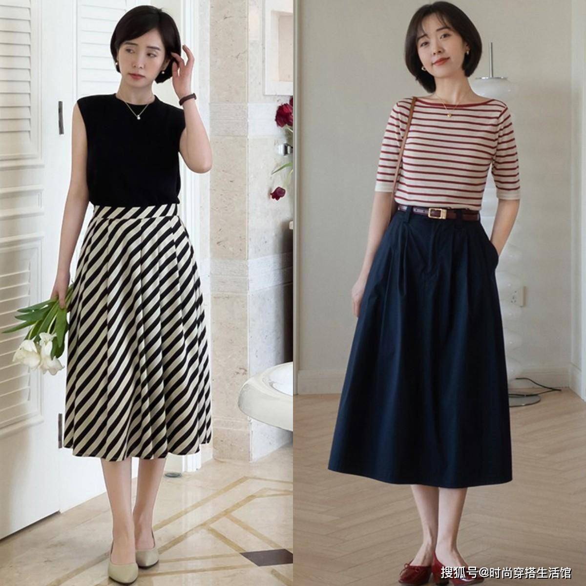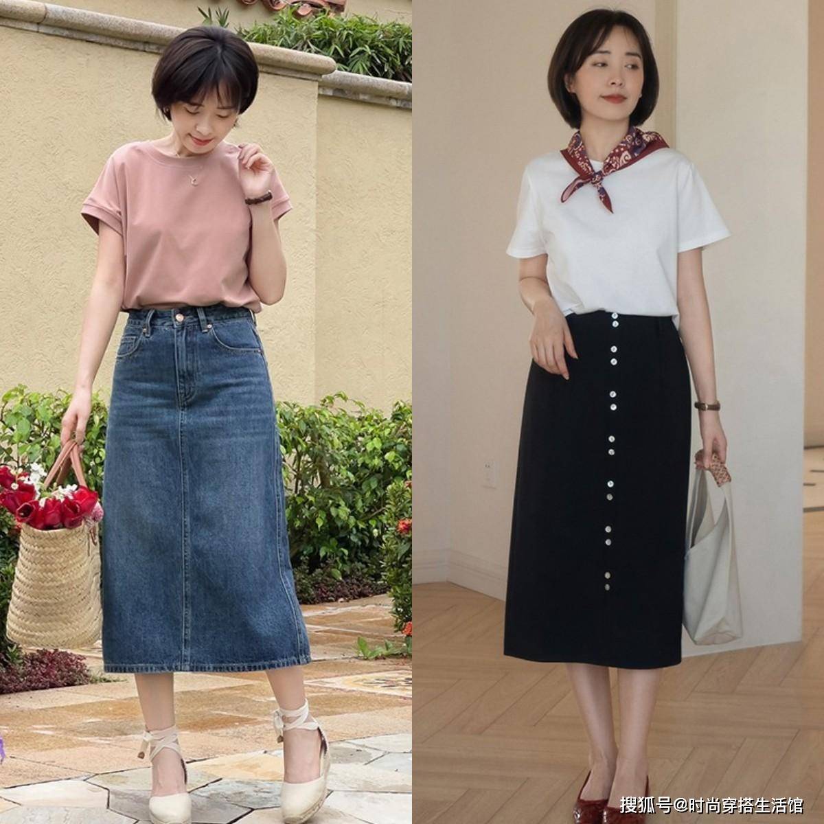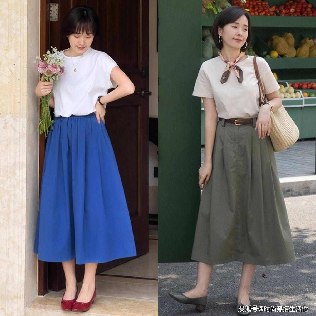— 今年T恤搭配裙子出新意,优雅显腿长 —