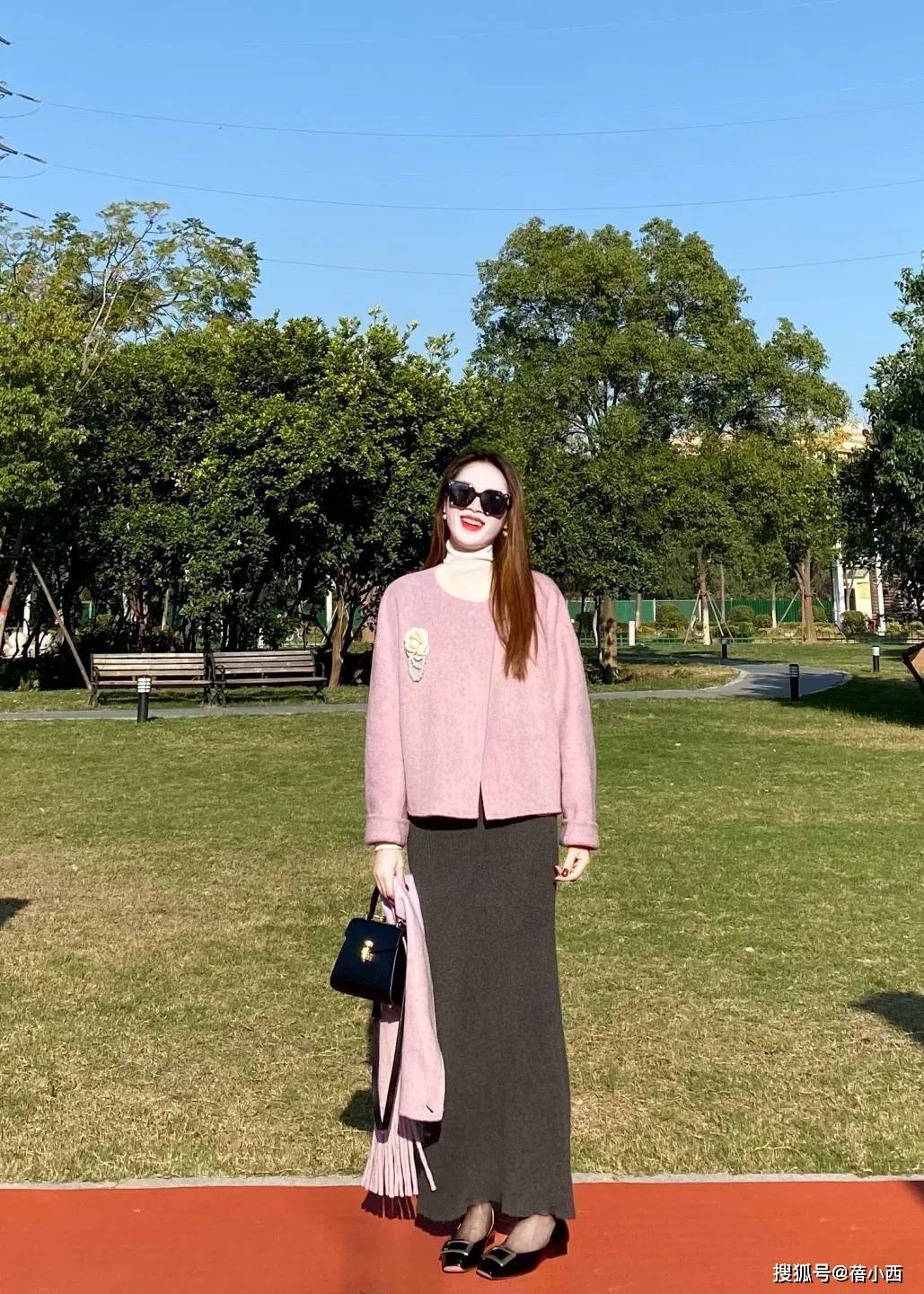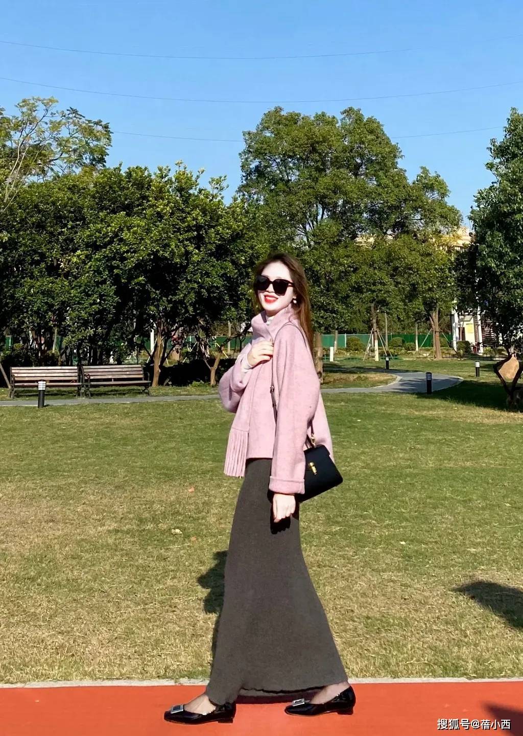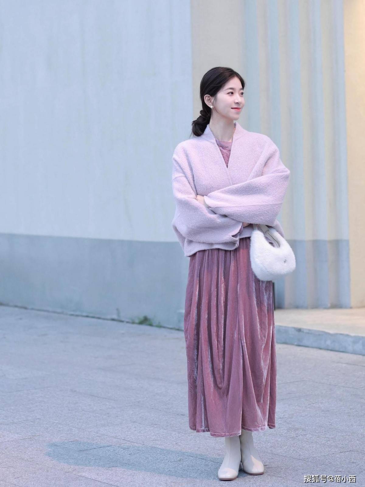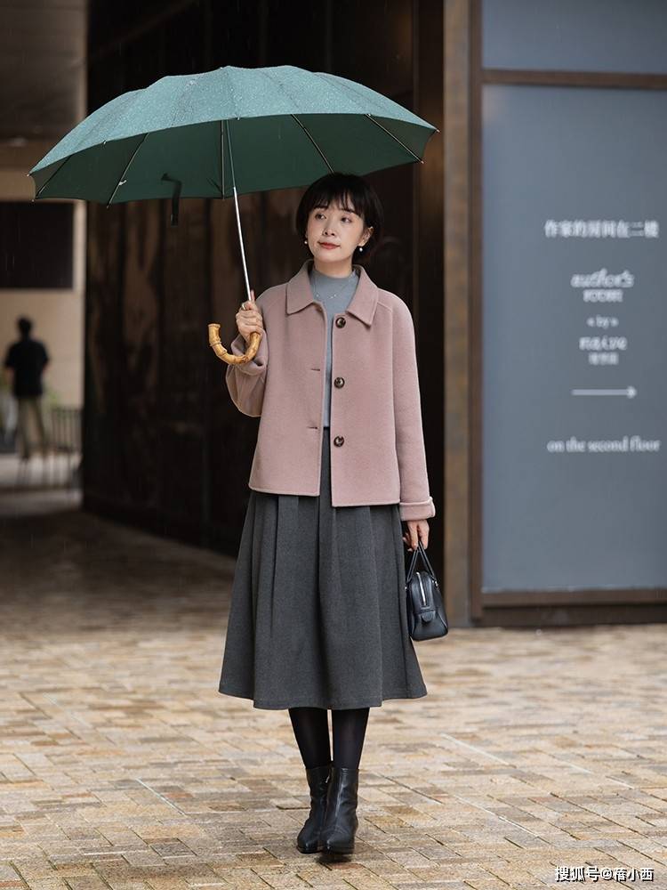 — “粉紫色毛呢外套+针织半裙”,秋冬这么穿,保暖又减龄太美了! —