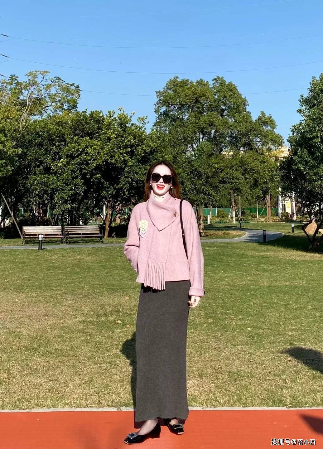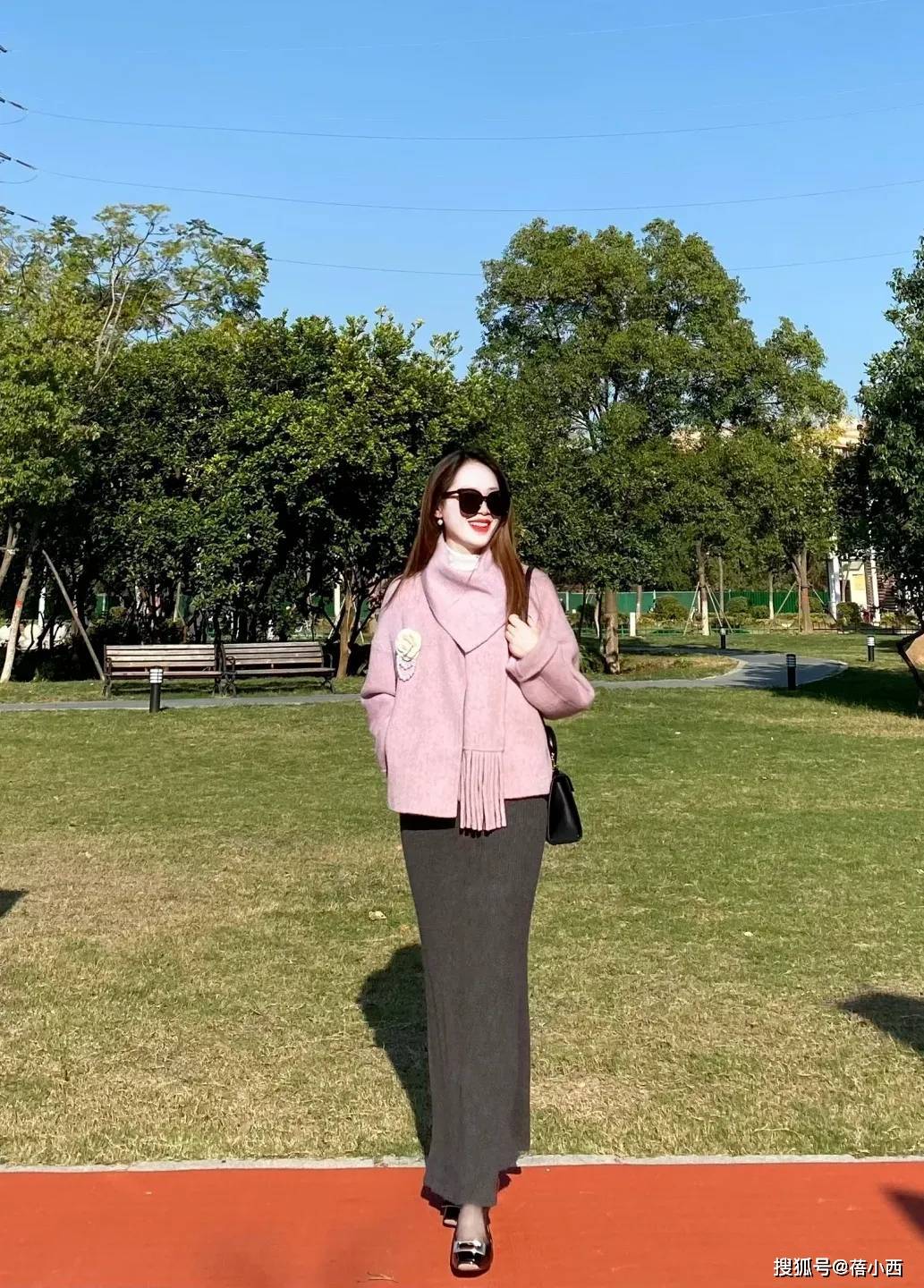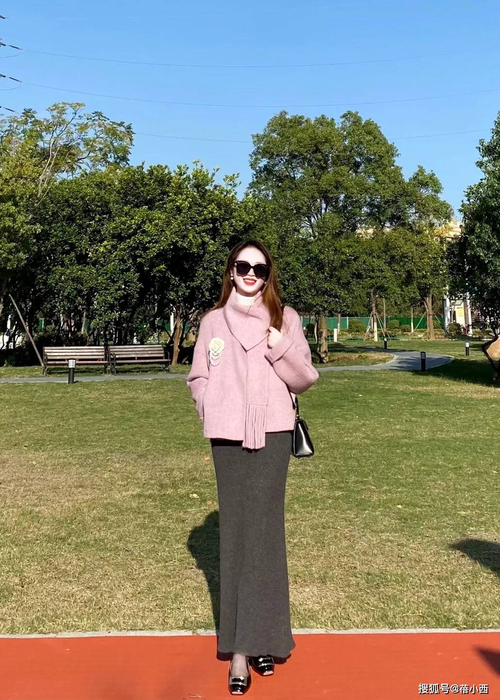 — “粉紫色毛呢外套+针织半裙”,秋冬这么穿,保暖又减龄太美了! —