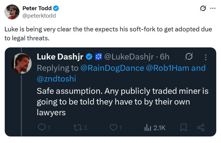 — Luke Dashjr分析:比特币遭遇攻击”——BTC支持者抨击软分叉提案中的“法律威胁” —