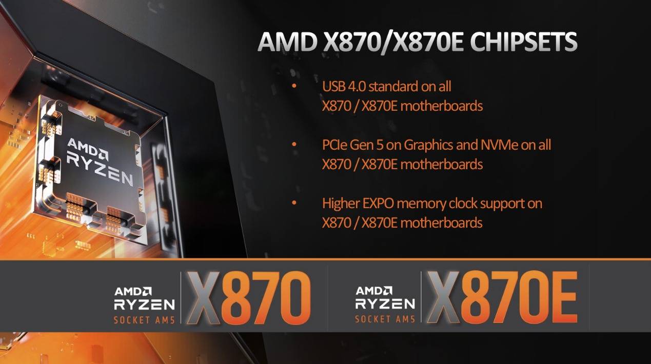 不过,新的X870E与X870主板将会标配USB4接口,传输速率将高达40 Gbps,桌面端也能享受到超高速的传输标准。另外,全新的X870E以及X870芯片组的主板还将进一步提升内存超频性能,带来更高的AMD EXPO内存超频选项预设,并且AMD给锐龙9000系处理器带来了OPP(Optimized Platform Profile)预设,据说内存性能能更进一步。