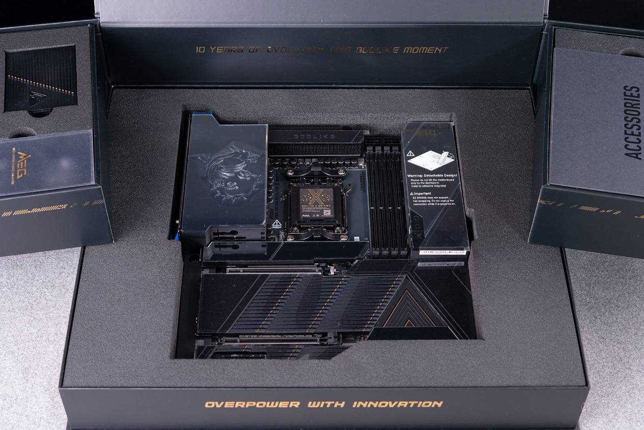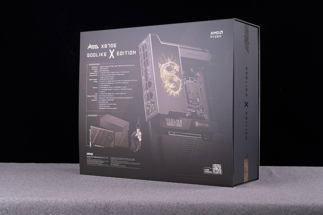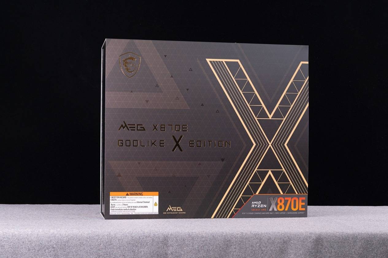 很多品牌的旗舰级产品从包装开始就能感受到其地位,微星也不例外。这次的微星MEG X870E GODLIKE X EDITION超神更是夸张,比普通版的X870E超神还要大上不少。外包装巨大的X字样很难让人不注意到这款主板的奢华!黑褐色点缀金色的设计语言,从看到的第一眼开始,就能感受到其从内而外散发出的尊贵之气。