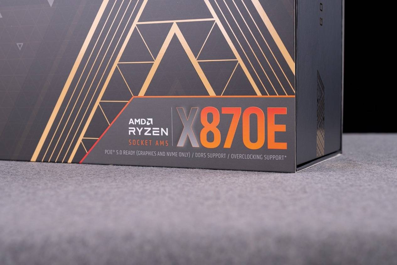 右下角则是AMD X870E芯片组的标识,简单而霸气。
